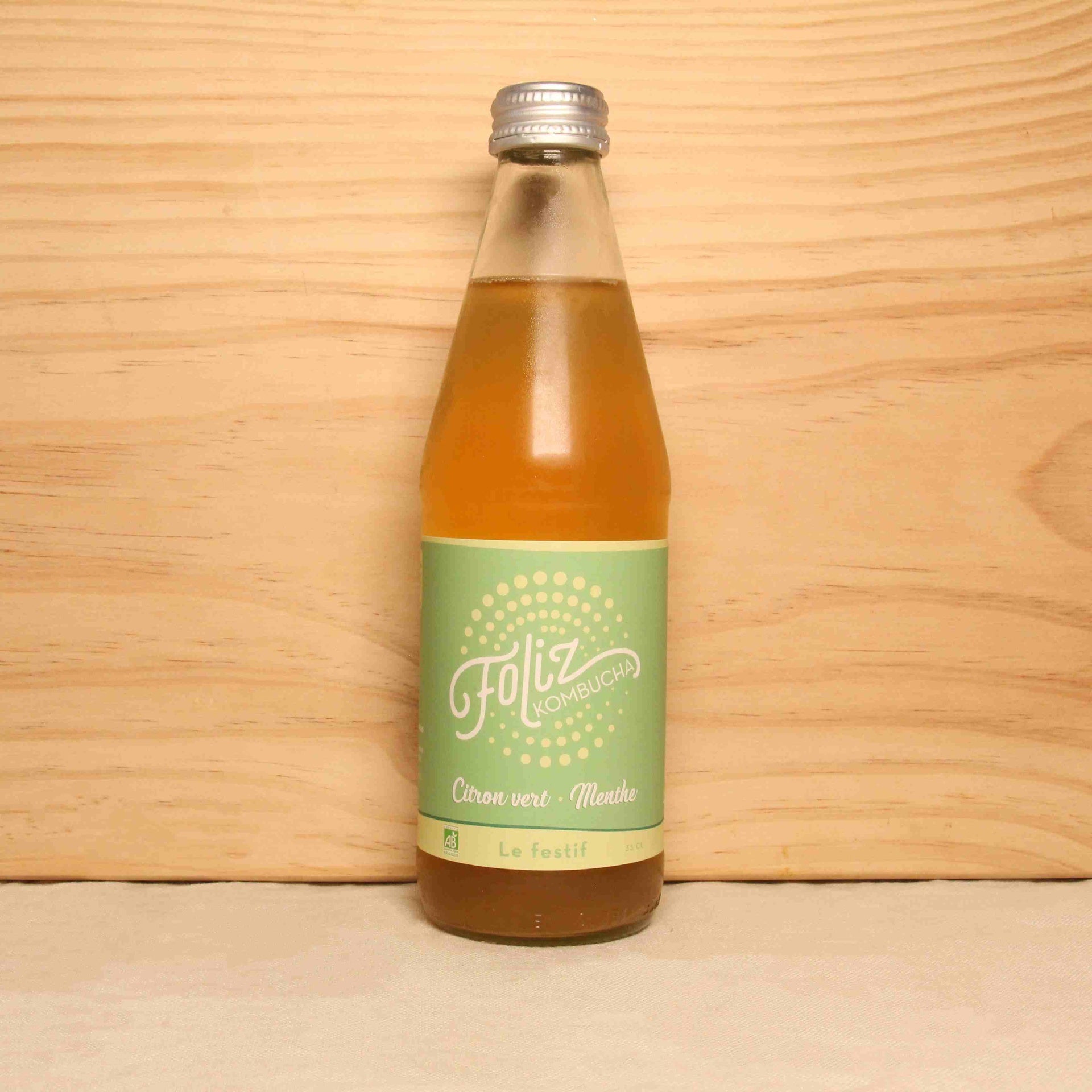 Boisson bio, naturelle et pétillante, obtenue à partir d' une fermentation de thé.