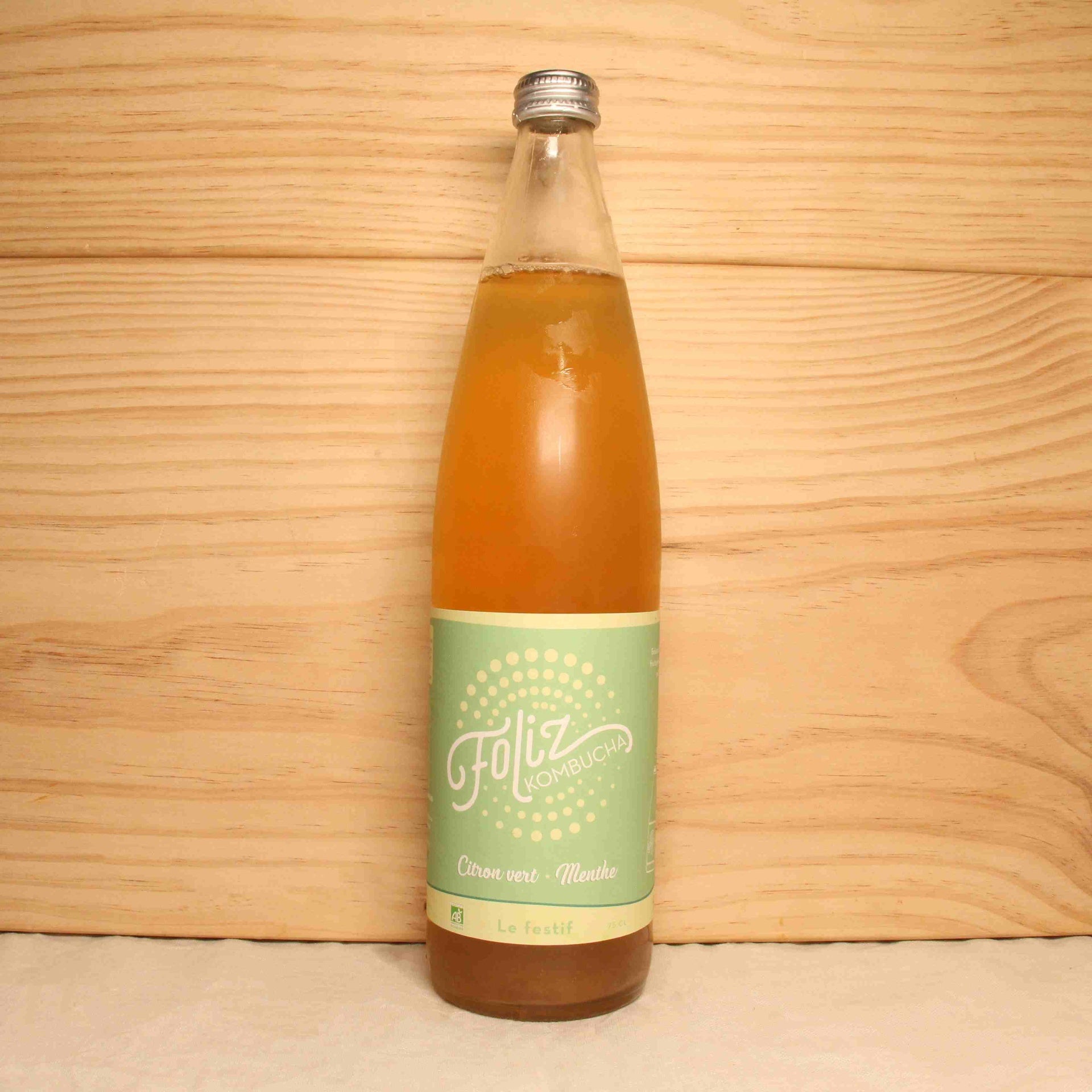 Boisson bio, naturelle et pétillante, obtenue à partir d' une fermentation de thé.