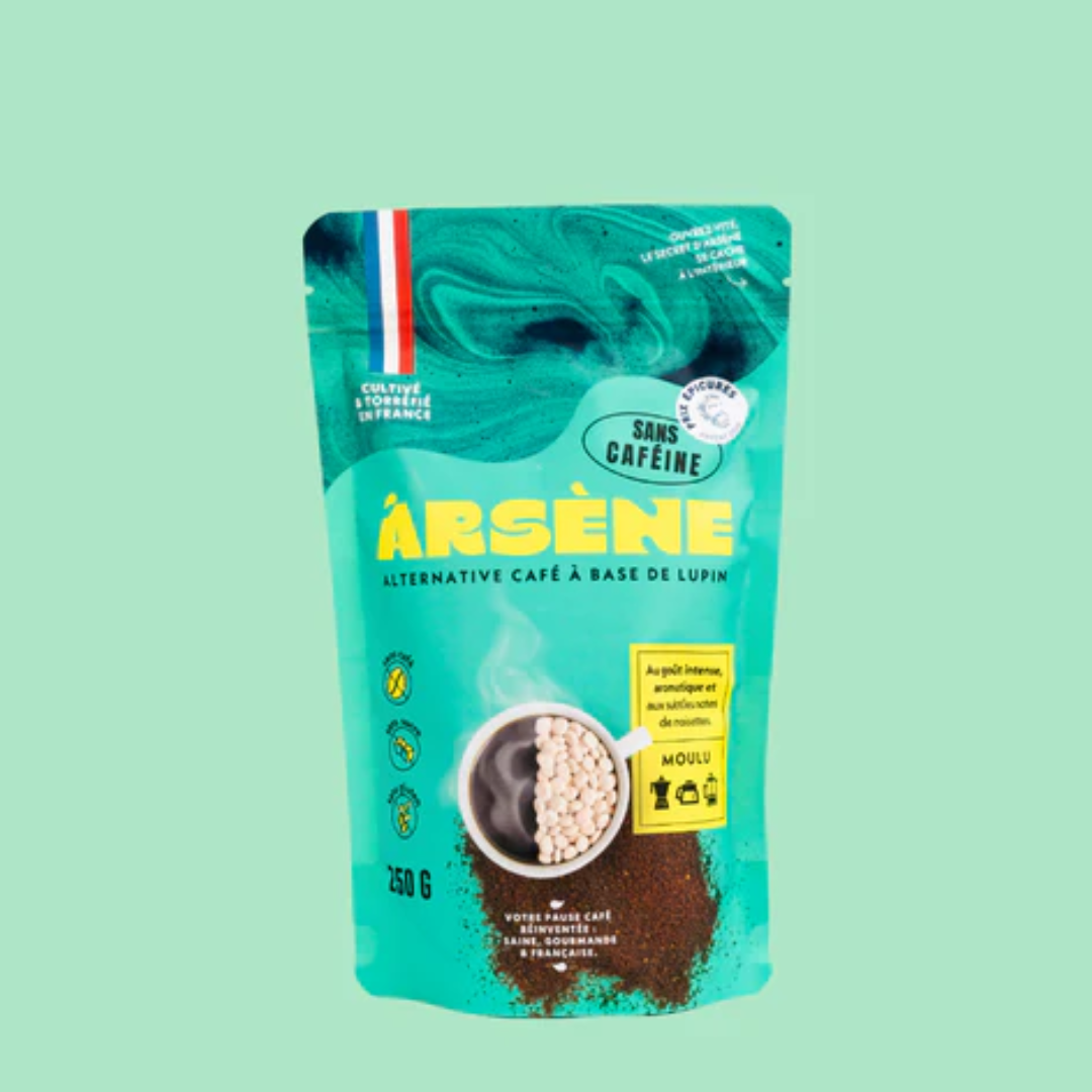 Découvrez Arsène, une alternative au café naturellement sans caféine. Cette boisson est élaborée à partir d’ingrédients 100 % français : le lupin, le pois chiche et la chicorée, soigneusement torréfiés pour révéler leurs arômes.