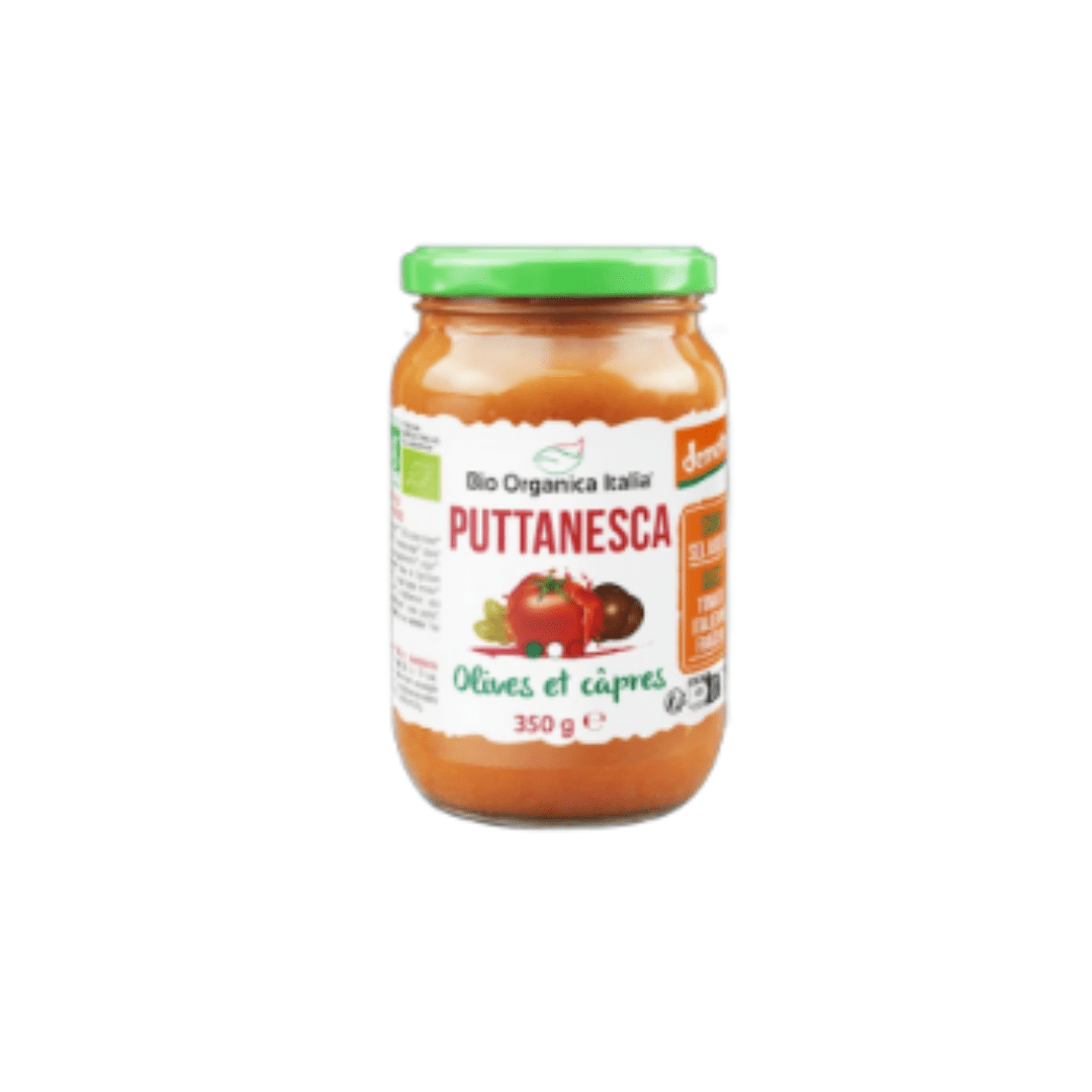 Sauce prête à consommer préparée à base de pulpe de tomate, de tomates séchées, assaisonnée d'olives, de câpres et d'huile.