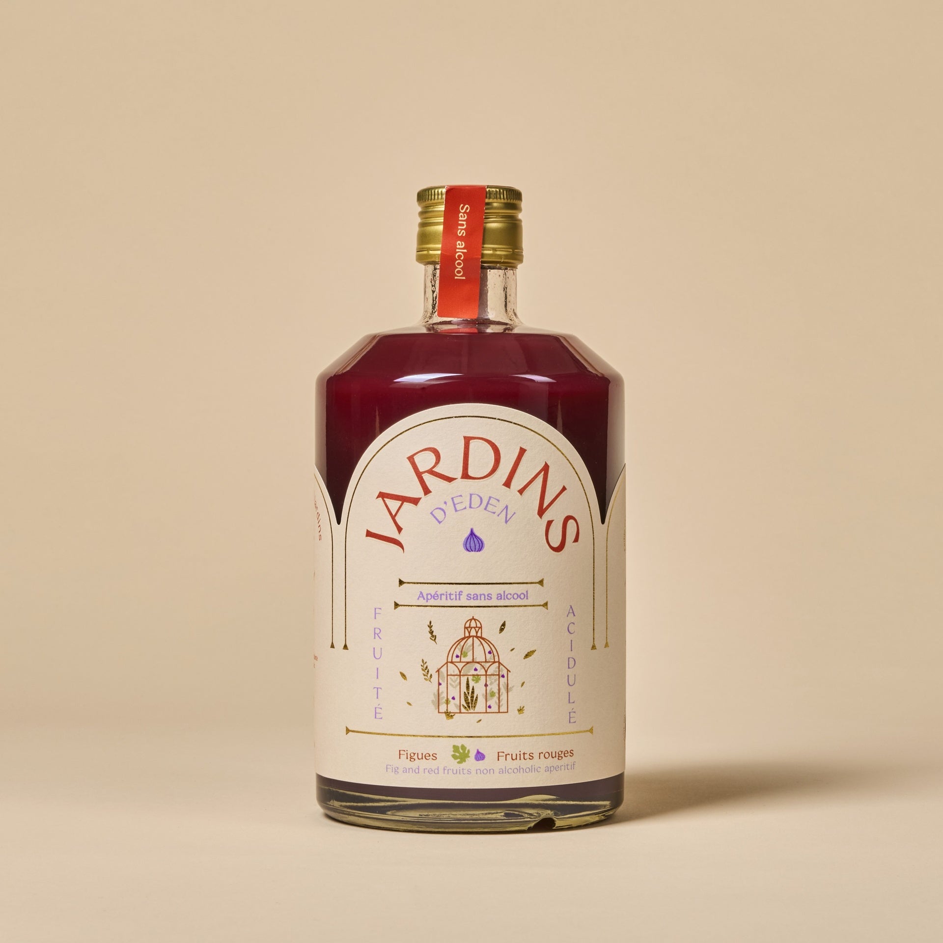 Eau, jus de pomme*, purée de mûre*, infusion de feuilles de figuier*, moût de raisin*, infusion d’hibiscus*, macérat de feuilles de figuier*, infusion de tonka*, arômes naturels, farine de graine de caroube*.