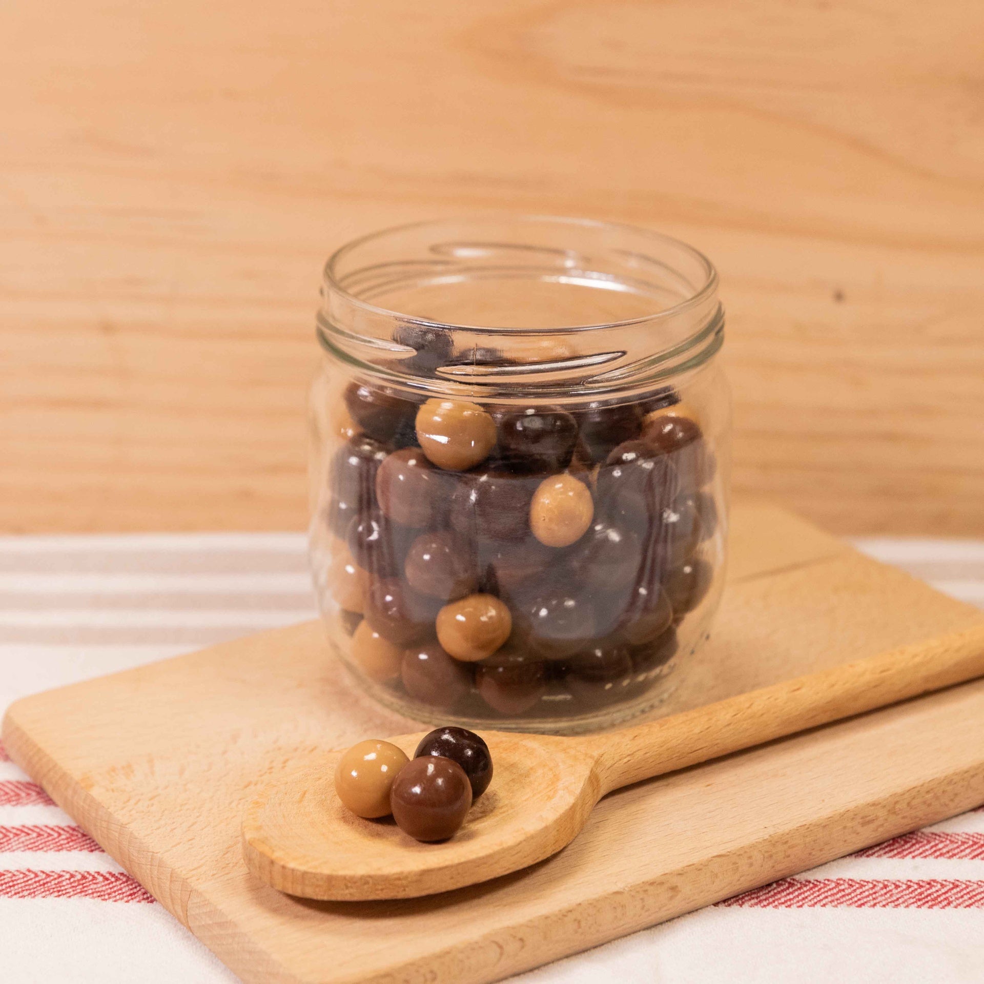 (*Enrobage chocolat noir: cacao 70% minimum / Enrobage blanc au caramel cacao 28% minimum / Enrobage chocolat au lait: cacao 33% minimum / Enrobage chocolat au lait et aux noisettes gianduja: cacao 35% minimum)